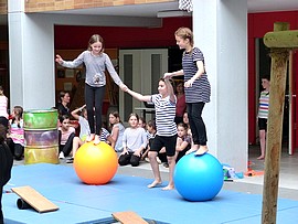 Impressionen vom Zirkusprojekt der Klasse 5b (Leitung: Susanne Janiak und Stefanie Ramisch), aufgeführt bei der Jahreshauptversammlung des Förderkreises am 1. Juni 2016.