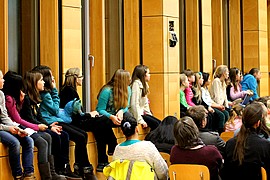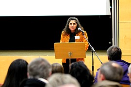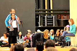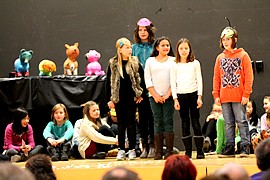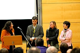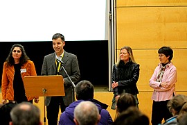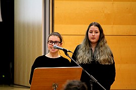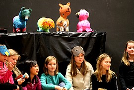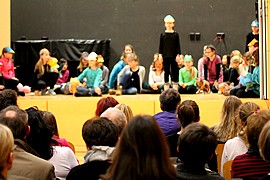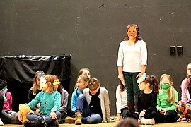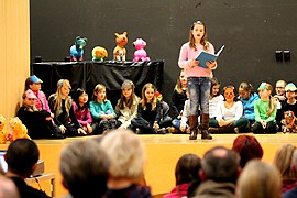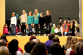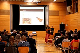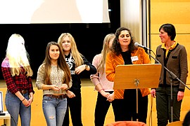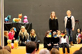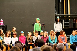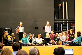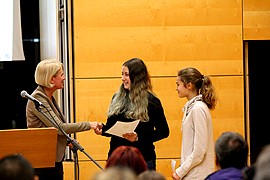 Nach der Verleihung der MNU-Stipendien und der Präsentation der Förderprojekte des vergangenen Jahres durch Schülerinnen der 10c, begeisterte die Klasse 5a mit selbst geschriebenen Gedichten das Publikum.
