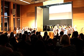 Endlich konnten nun auch die Mädchen der 5a zeigen, was sie unter der Leitung von Frau Gerner einstudiert hatten, und unterhielten uns mit witzigen „englischen Impressionen“. Es war absolut beeindruckend mit welcher Sicherheit, die Schülerinnen in der neuen Sprache nach nur einem halben Jahr Unterricht unterwegs waren.